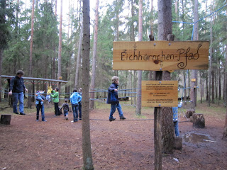 Mann muss dem Eichhörnchenzeichen folgen um die einzelnen Ziele zu erreichen. Das macht viel Spaß und es ist sehr schön im Wald zu spazieren und Sachen zu entdecken, wie z.B. Tierspuren, Waldtelefon, Seilbahn, Holzhaus, Waldwippe!!!! Man kann auch im Waldlabyrinth oder Waldtheater spielen!!!! Der Rundgang kann je nach Lust unteschiedlich lang dauern. Ich würde sagen so mindestens 1 Stunde!